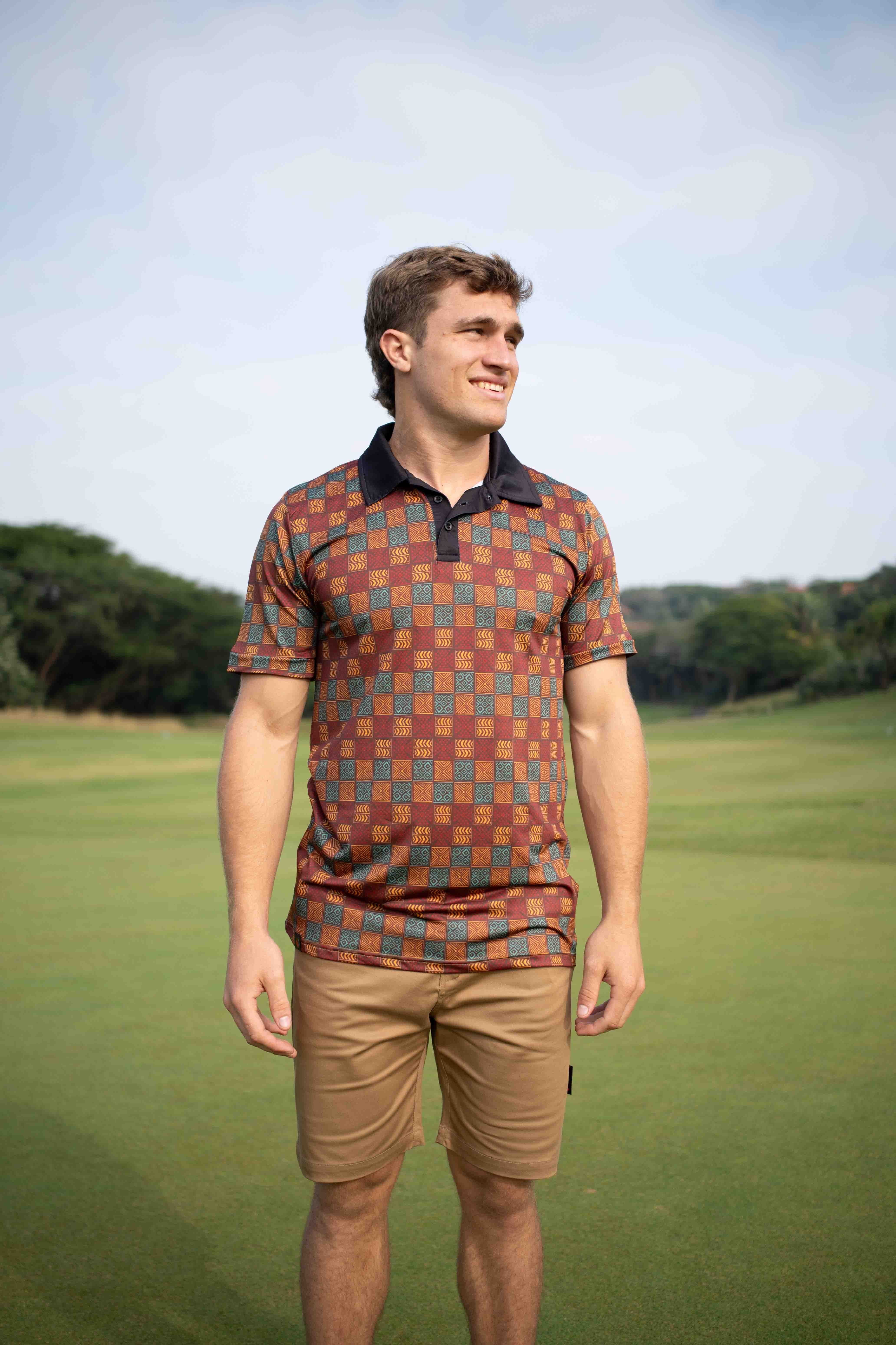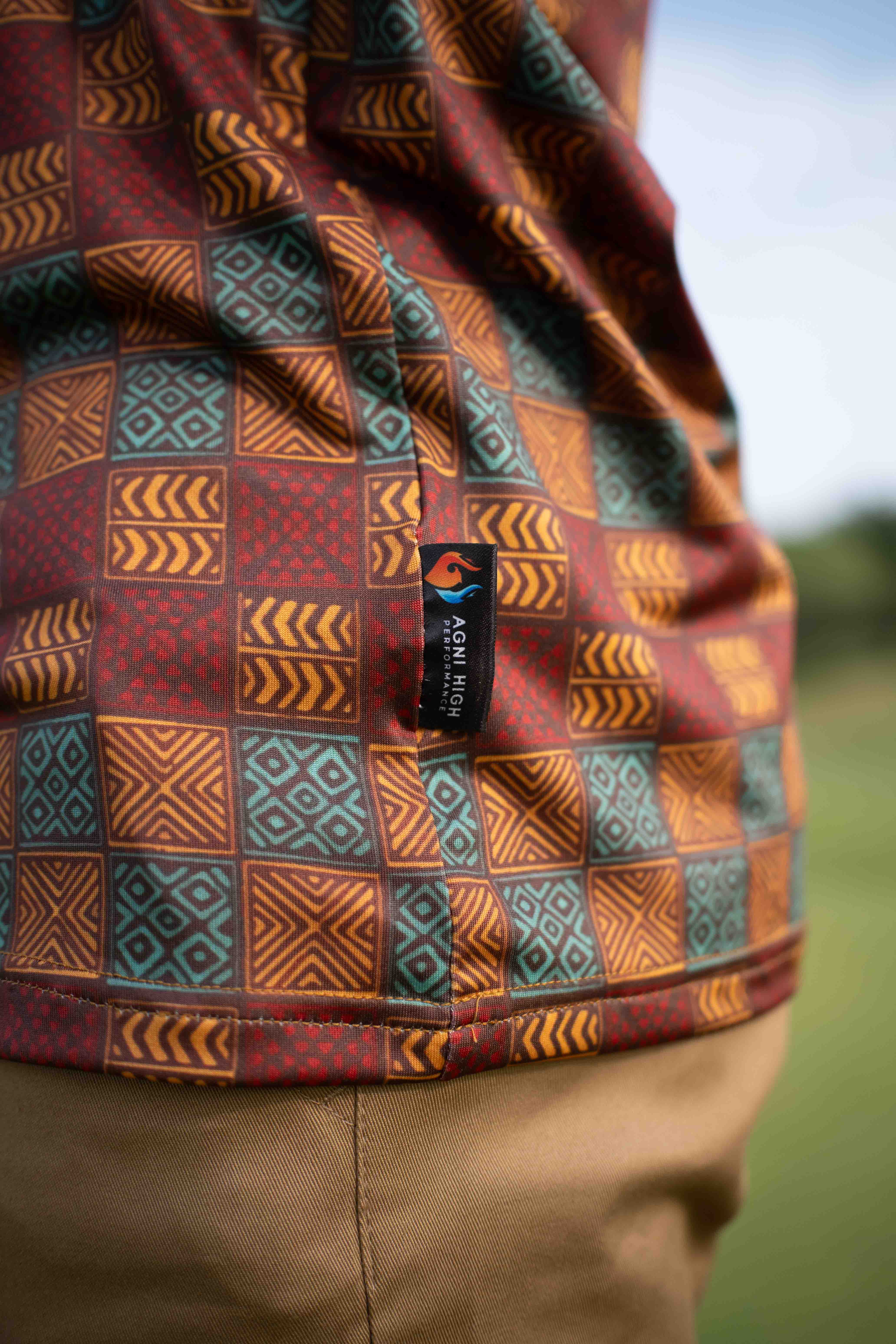 A timeless and versatile polo. Infuse your sporting wardrobe with rich artistry of Africa. This men’s golfer features authentic African print with tribal block patterns. This staple piece offers an understated elegance and is crafted from a soft high-quality fabric that provides all-day comfort and a refined look.