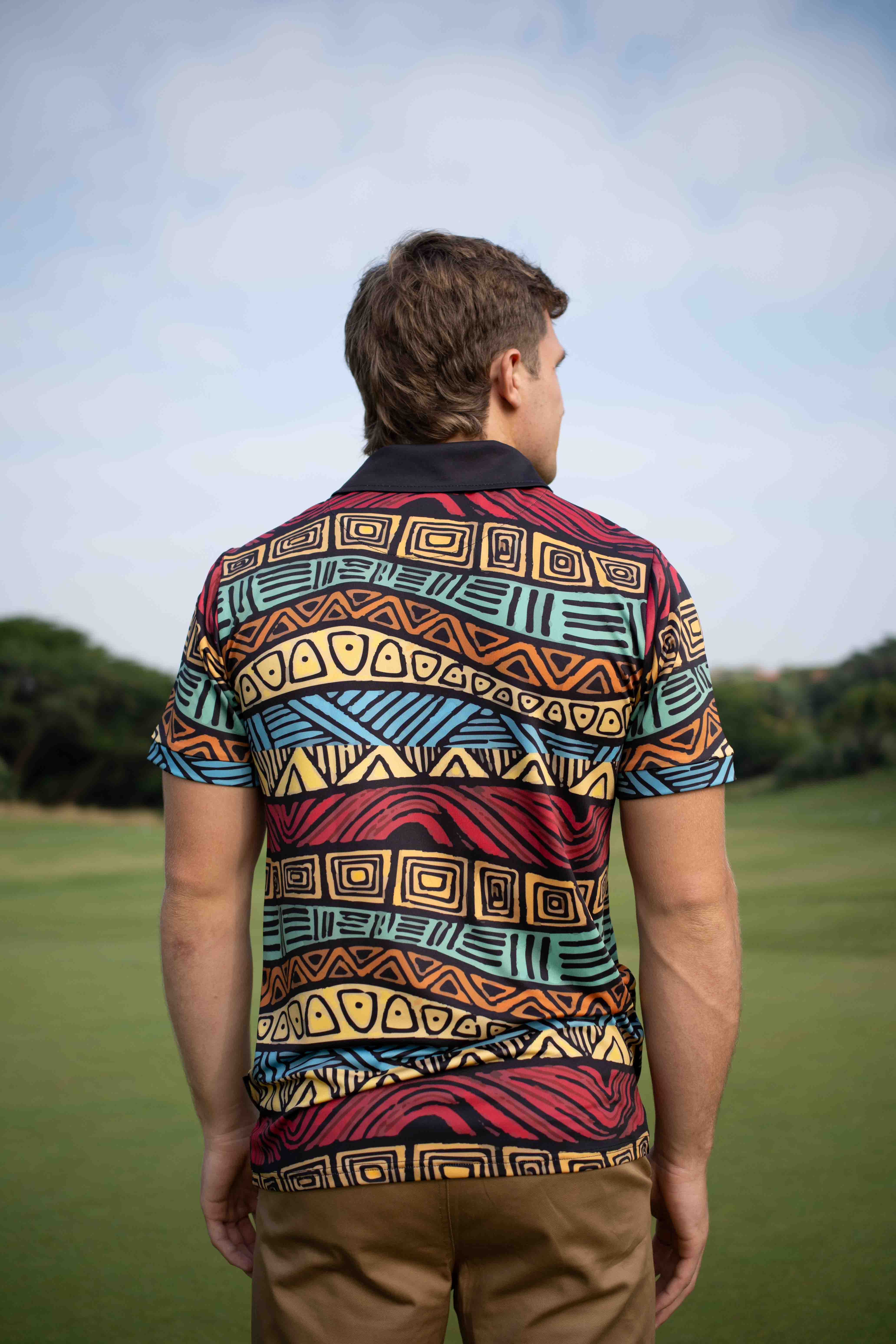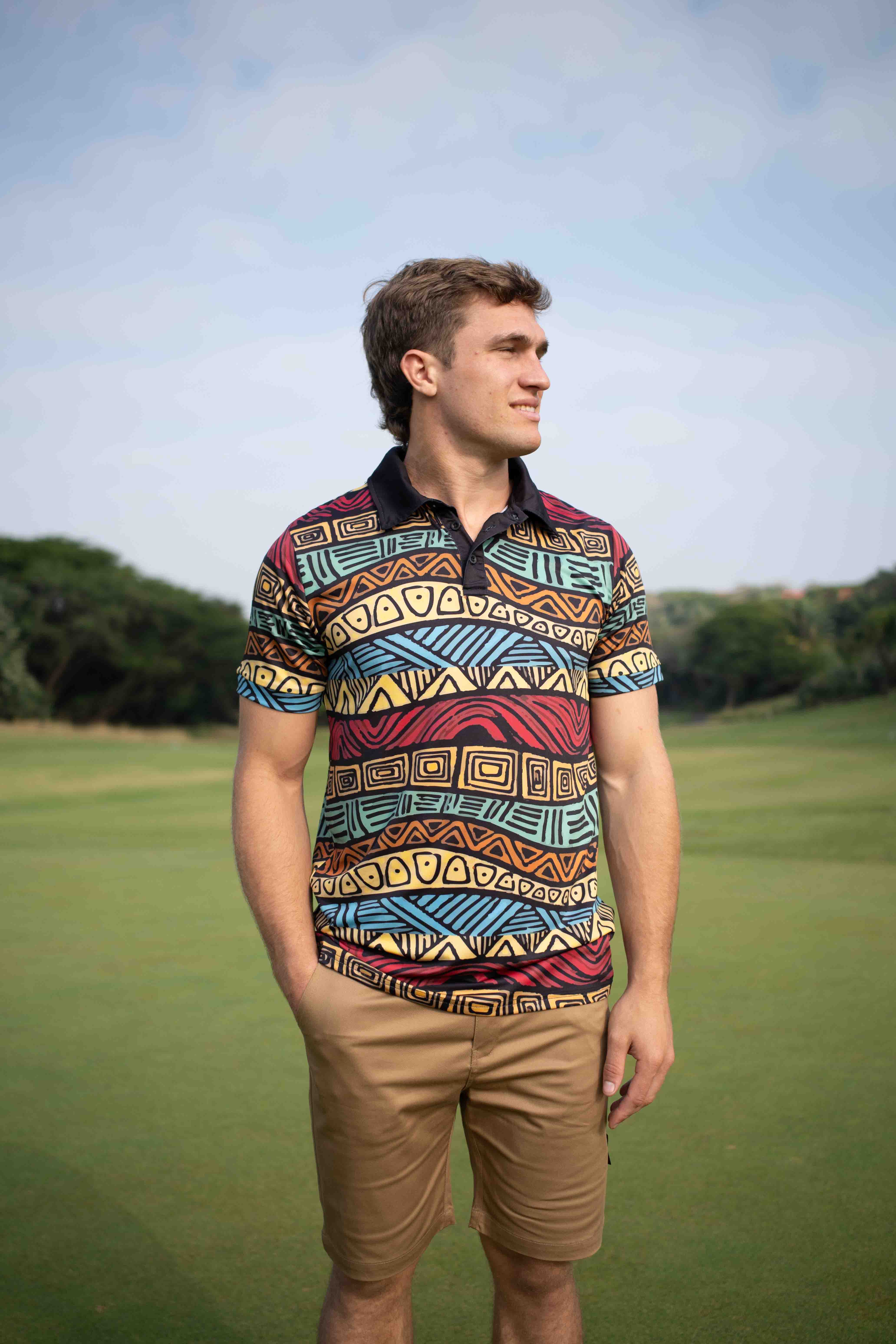 Experience the vibrant legacy of Africa with our men’s golf shirt. Adorned with striking geometric designs rooted in cultural heritage. This piece blends performance with profound artistic expression. Crafted from lightweight, moisture-wicking and breathable materials.